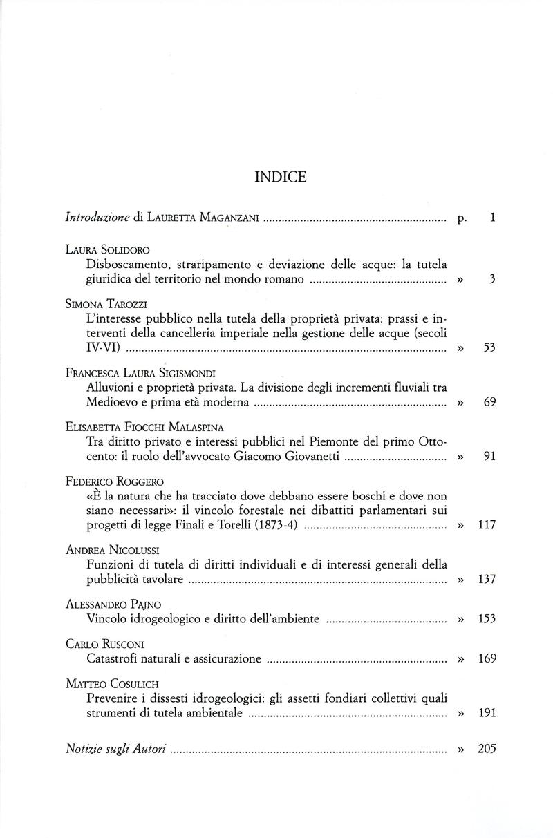 Gestione del rischio idrogeologico e propriet� privata: i diversi modelli di intervento dall?antichit� ad oggi